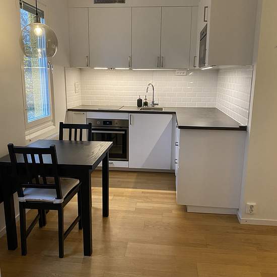 En jättefin 1:a på 28kvm, men känns som en liten 2:a då den är väldigt bra planerad. Stort kök för storleken på lägenheten, med mycket förvaring. Lägenheten ligger på bottenplan, med naturutsikt. Parkering finns precis bredvid huset, med 3min promenad till pendeltåget som tar dig till city på 30min. En minuts promenad till mataffären, och förråd finns på samma våning. I lägenheten finns även både disk och tvättmaskin, och det går också att boka tvättstuga i föreningen. Lägenheten hyrs ut omöblerad. Serviceavgift för hyresgäst: 476