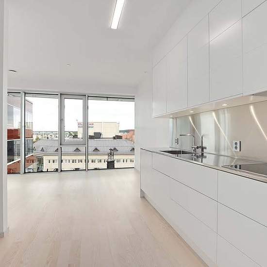 Exclusive 34m2 condo in the very center of Umeå. Available from February 2026, unfurnished. It is located in the beautiful architectural complex Glitne, on top of the Utopia mall. It includes access to the shared Spa area that includes a sauna and hot-tub. Parking available for rent in the building.