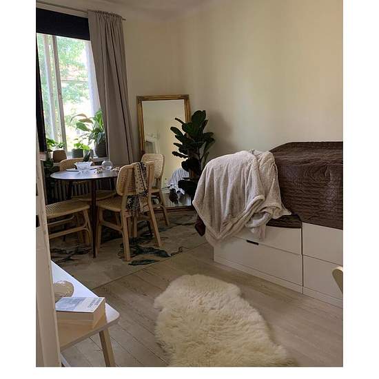 22 kvm, 8400kr mån kr inkl. Tv/wifi/bredband, källar- och vindsförråd. Ej möblerad, I Källaren: gym-rum (helt okej utrustning), tvättstuga, ett övernattningsrum som går att boka för gäster (bäddsoffa tror jag). Fin innergård med mycket växter, blommor och träd, samt en grillplats utanför och flera uppsättningar med utemöbler. Höganäsparken ligger precis bakom innergården och är en trevlig liten park. 2-3 minuters gång till gym (Friskis och Svettis Väderkvarn). 5 min gång till närmsta ICA i Kvarnen Galleria med Apotek, Systembolag, frisör ...