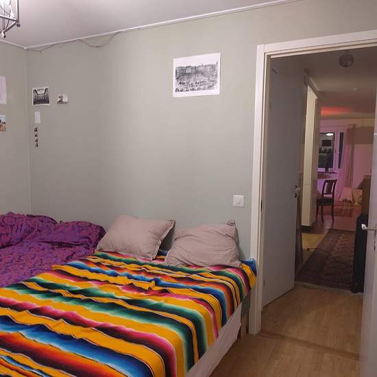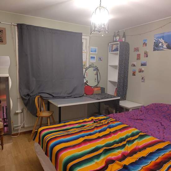 Hej, I am going abroad for 2 month and I want to rent out my beautiful room. You will be in the student area Flogsta and you will live together with my lovely flatmate, she is a 23 year old physics student and very friendly. It is a 2 people apartment and it includes a little kitchen, a big livign room, nice bathroom and a balcony. From the living room you can see the fields and if you are lucky a moose. This is not a corridor, so we enjoy clean spaces wihtout hussle. It is easy to bike to university or take a bus. if you want, you are super...