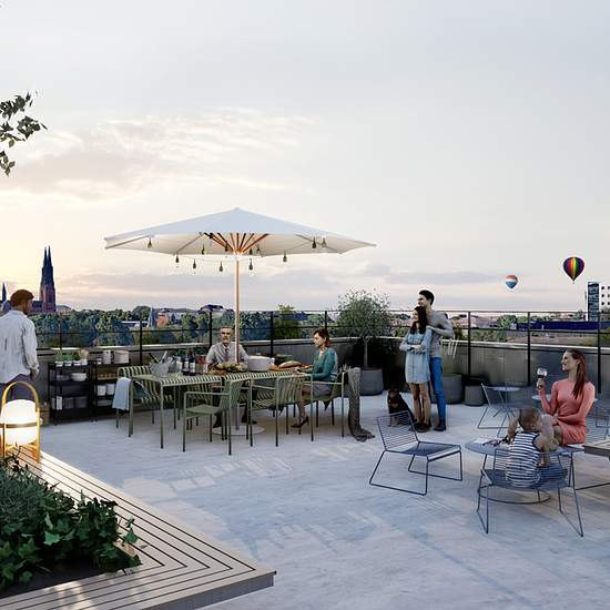 Ettor och tvåor med kvadratsmarta lösningar så att du ska få så mycket utrymme för livet som möjligt. Alla lägenheter har genomgående hög standard, med rostfria vitvaror i köket och kombinerad tvättmaskin/torktumlare i badrummet. Både kök och badrum är inredda med Riksbyggens inredningsstil Harmoni. Precis som namnet vittnar om är Harmoni en balans mellan vackra och tåliga material. Och där funktionalitet blandas med estetiskt tilltalande detaljer, färger och former. Alla bostäder har balkong och tillgång till en gemensam takterrass. I...