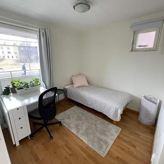 Rum uthyres i lugna Luthagen, nära natur, affärer, restauranger och enkelt att ta sig till centrum. Du delar lägenheten med mig och min 20-åriga son, vi är lugna och hjälper dig gärna om du behöver hjälp med någonting. Vi söker dig som är lugn och icke-rökare. Boendet Sovrummet är på 8 m2. I rummet finns en säng 90 cm, en garderob samt bord och stol. Sängkläder och handduk ingår. Lägenheten är en fyra. Badrummet är utrustat med dusch, toalett, handfat samt tvätt- och torkmaskin . Köket är fullt utrustat med bl a spis, ugn, Micro och dis...