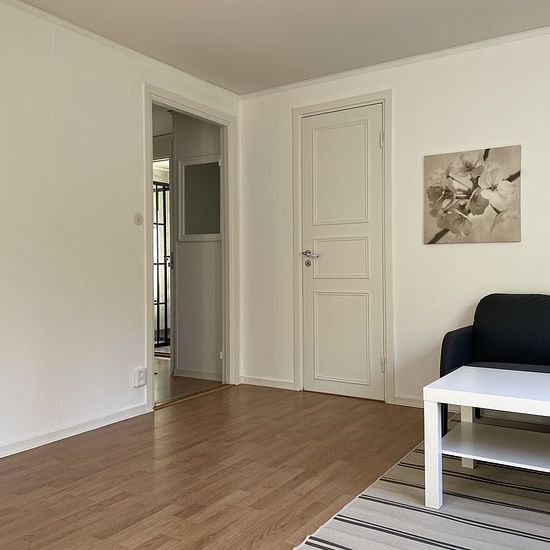 En trevlig etta i utkanten av samhället med skogen som granne. Nära affär och busshållplats. Tvättstuga i källaren och i källaren finns två förråd som tillhör lägenheten. I hyran ingår värme vatten avlopp sophantering. Egen hushållsel tillkommer. Serviceavgift för hyresgäst: 220
