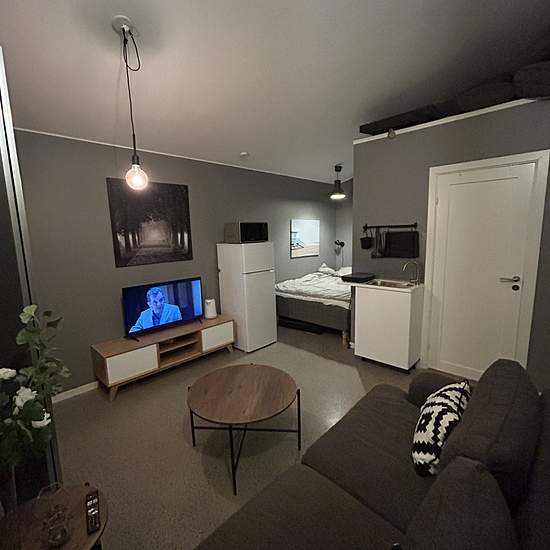 Litet välplanerat möblerat boende på vår tomt med badrum, kylskåp, kokplatta, tvättmaskin. Det ligger i Valbo, p-plats finns. Allt är i nyskick. Enklare kökstillbehör, djur och rökfritt. Badlakan samt sänglinne enligt överenskommelse. El, vatten, värme och internet ingår i hyra. Serviceavgift för hyresgäst: 544