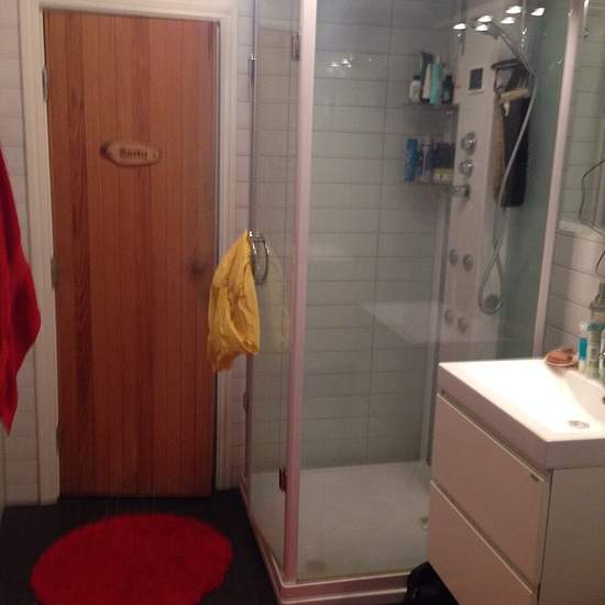 Lägenheten är belägen i natursköna Näset i Göteborg. Den ligger i markplan i en suterrängvilla. Den består av ett rum med ett platsbyggt litet kök med skåp, diskho, två kokplattor, mikro, köksfläkt, kyl med frysfack. Villan har två våningar och toalett och badrum (i anslutning till en bastu och ångbad, som kan användas av mig ibland enligt överenskommelse) är "eget" men på en delad yta på nedre våningen. På övre terrass finns även en pool som får användas enligt överenskommelse. Internet ingår.. En tvättstuga finns i anslutning till lägenhet...