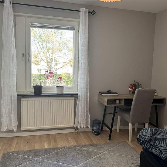 En fint rum hyres ut i en stor bostadsrätt med fyra rum och två badrum. Lägenheten är ny renoverad. Den ligger på andra våningen men har egen ingång. Rummet och badrum ligger vid hörnet av lägenheten. Du kommer och ha eget badrum och egen förråd men vi delar kök och vardagsrummet samt balkongen. Vi är ett ung par som bor i lägenheten och en av oss tog examen i Juni. Tidigare borde i rummet en tjej som pluggade på Campus. Vi skriver kontrakt mellan 15 augusti 2023 till 15 juni 2024, funkar allting bra då kan vi förlänga kontraktet. ...