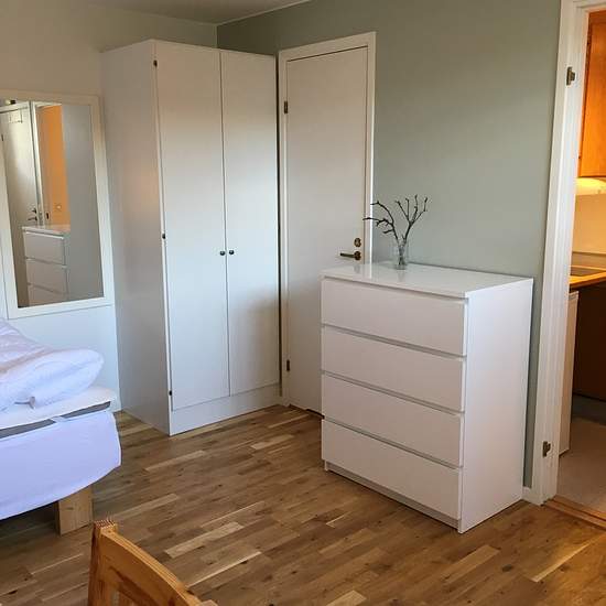 Trevlig enrummare i källarplan med egen ingång. Lägenheten är ca 30 kvm och består av ett rymligt vardagsrum med sovplats. Pentry med spishäll, kylskåp samt ett rymligt badrum med dusch. Lägenheten är fullt möblerad. Utanför lägenhetsdörren finns en hall för förvaring av skor och ytterkläder. Utanför lägenheten finns en mindre uteplats som gränsar mot gång och cykelvägen. På uteplatsen finns en tvättstuga med tvättmaskin. Hallen, uteplatsen och tvättstugan delas med hyresgäst i den intilliggande lägenheten. Lägenheten ligger i ett lugnt v...