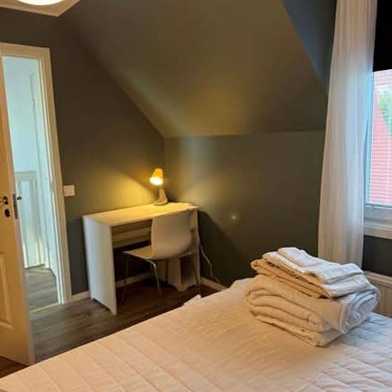 Hi everyone ! One of the room in our 4-bedrooms shared house just became available in Kista, Stockholm (10-12 min walking distance to Kista metro station). The room is fully furnished and measures a bit over 11m2. The house is also fully furnished and includes: • 3 toilets (1 in the main bathroom and 2 separate) • 1 big bathroom • Laundry room with an extra shower • Spacious kitchen and comfortable living room, perfect for cooking or hanging out together • Lovely garden — great for barbecues or enjoying some sun The rent is 595...