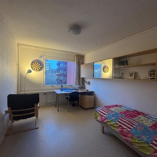 Attention: only available in March and April: 25.02.2026 - 30.04.2026 In the dormitory, there are four rooms which means three roommates. The kitchen is shared among those. However, the bathroom is only shared with one person. The bedroom is furnished and a sighting is possible Serviceavgift för hyresgäst: 210