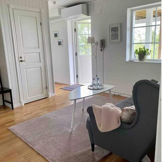 Ett sovrum, vardagsrum, toalett med dusch, kök, med tvättmaskin och torkrum att hyra i bottenvåning på villa. Egen ingång, härlig egen altan Fräscht, nyrenoverat och smakfullt inrett. Boendet ligger i lugnt område. Goda bussförbindelser - dock ca 2 km bort. Parkering finns. El och uppvärmning tillkommer. Bredband finns. Närhet till strand och bad. Stor altan och tillgång till trädgård samt en “breathtaking” sjöutsikt. Skötsam, respektfull hyresgäst önskas. Rökning, alkohol eller övernattande personer är ej tillåtet. Serviceavgift för hyr...
