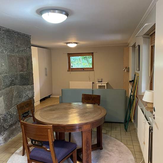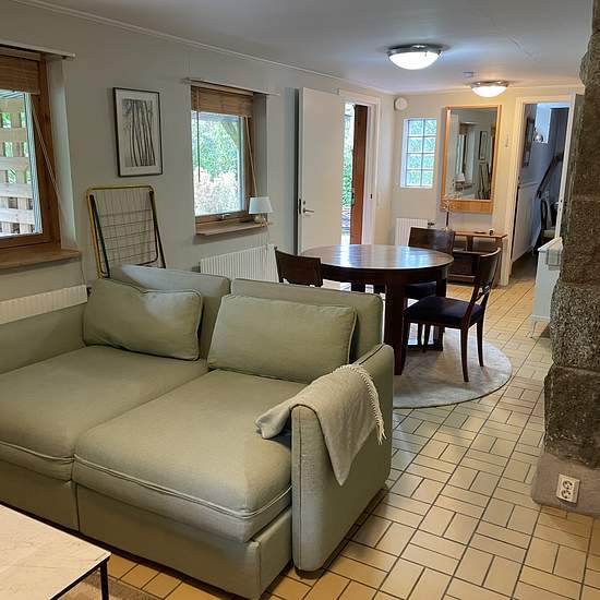 Möblerad lägenhet i villa – ca 65 kvm ( med extra sovrum 80 kvm). Vi hyr ut en trivsam och fullt möblerad lägenhet i källarplan på vår villa i Danderyd. Bostaden är cirka 60 kvm och passar dig som söker ett lugnt, tryggt och välskött boende i ett naturnära område. Vi söker i första hand en ordningsam och stillsam hyresgäst. Ingen rökning, inga husdjur, inga fester och ingen störande musik. Hyra: • 9 800 kr/månad för en person • 13 000 kr/månad för två personer (då ingår ett Stort sovrum). I hyran ingår värme, el, vatten, sopor samt snab...
