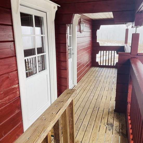 Charmig timmerstuga i tre våningar. Bottenplan med toalett/dusch och bastu samt en hall. Plan två - kök och ett vardagsrum. Plan 3 är ett supermysigt sovloft. Högt beläget med sjöutsikt över sjön Vällen. Lugnt och fridfullt område med närhet till Charlottenberg shoppingcenter, Valfjället, badstrand samt fina naturområden. Tomt delas med ägarna som bor i det större huset på samma tomt. De använder huset som landställe och är främst på plats sommar och skollov. Möblerad, men vill man ha sina egna möbler går det självklart bra. 1,5...