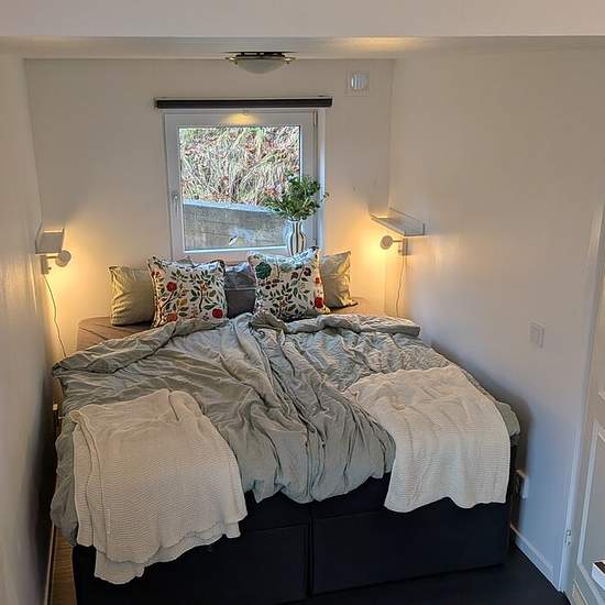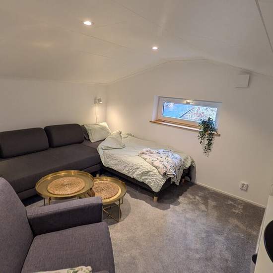 English below Hej Vi har ett nybyggt (2019) hus på 40m2 med loft som har full ståhöjd att hyra ut. Huset hyrs ut fullt möblerat med fyra sängplatser. En dubbelsäng i sovalkov (18x200) på nedervåningen och två bäddsoffor (90x2000) på loftet. Trappan är av sparmodell och lämpar sig inte enligt oss för små barn. Köksgeråd, mikrovågsugn, diskmaskin och tvättmaskin finns. TV finns att casta till. I hyran ingvärme, internet, sophämtning etc. Parkera kan man göra på gatan utanför. Hushållsel ingår med 350kwh/månad. Högre förbrukning betalas ...