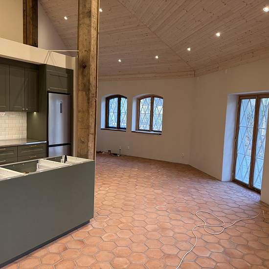 Unikt boende snart färdigställt för hyresgäst Vi är just i slutskedet på färdigställande av en totalrenovering av detta karaktärsfulla boende i den gamla åttakappan på Ousbyholm. Boendet är helt unikt i sin åttkantiga utformning med 7 meters takhöjd i en öppen planlösning. Boendet passar utmärkt för 1–2 personer som värdesätter kulturhistorisk charm, genomtänkt arkitektur och exklusiva materialval. Den öppna planlösningen mellan kök och vardagsrum skapar ett ljust och inbjudande hem med fina sällskapsytor. Här finns även en separat tvä...