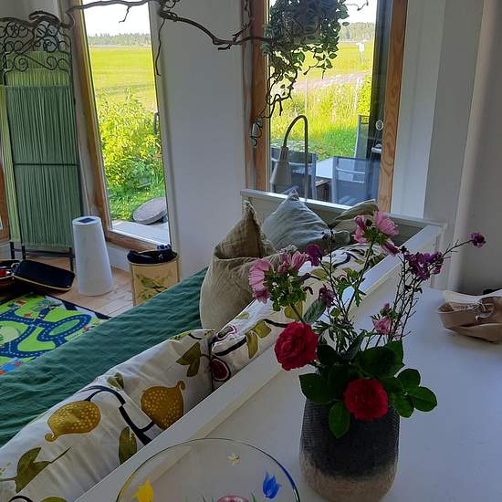Beskrivning Stuga nära havsbad och naturupplevelser. Soluppgång, trandans och lekande rådjur ser du på ängen innan havet tar vid. Stugan har på 38 m2 ett sovrum med dubbelsäng ett allrum med dagbädd med 2 80 sängar. Ett matbord med 4 platser. Kök och badrum har kyl/frys, micro spis/ugn. Dusch, vattentoalett. Tvättmaskin. Luftvärmepump som kyler/värmer beroende på när ni vill hyra. El ingår inte. Uteplats med grill. Trädgården sköts av mig så den är bara att njuta av. Långhyra eller semesteruthyrning är båda intressant. Flyttstädning görs...