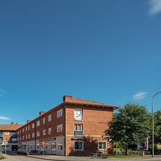 Fastigheten består av två byggnader i vilka det finns 18 hyresrätter och 18 lokaler. När huset byggdes 1952 fick det benämningen ”Theobroma 1952” i ett konstfullt järnmärke på fasaden – vilket fritt översatt betyder Kakaoträdet. Bland hyresgästerna återfinns bland annat apotek och vårdcentral, tandläkare och lokala butiker. Fastigheten ligger ca 15 km nordväst om Linköping i Ljungsbro genom vilken Göta kanal passerar. Kanalen kan korsas i Ljungsbro under en av kanalens två akvedukter.