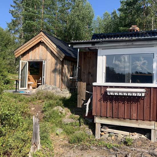 Två enkla stugor vid en sjö, mindre än två timmar från Stockholm. Den ena har ett separat utrymme för campingtoalett. Ingen tillgång till rinnande vatten och el. Uthyres årsvis med begränsad tillgänglighet på vintern, endast till skötsam familj eller par. Ej som permanentboende. Årshyra 35 000 SEK. Hyrs ut årsvis/en säsong. Serviceavgift för hyresgäst: 198