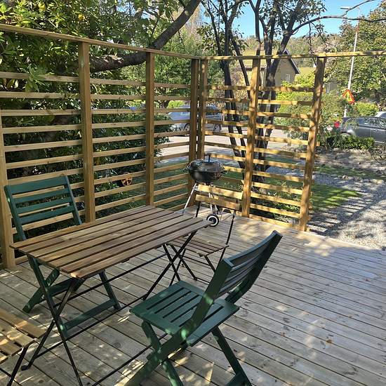 - Nybyggd stuga i två plan om 44 m2 i centrala Toltorpsdalen. - Fullt möblerad. Hög standard på kök och badrum. - Planlösning; plan 1: kök, matplats, hall och badrum. Plan 2: dubbelsäng (180x200), skrivbord, soffa och diverse förvaring - Bredband, 500 Mbit/s ingår - Parkering tillgängligt på gatan - Uteplats (15 m2) - Värmesystem omfattats av luftvärmepump och eluppvärmt badrumsgolv - 2 min till busshållplats (linje 25, 753) som tar dig till Sahlgrenska huvudentré på 7 min, Linneplatsen på 11 min och Chalmers eller Mölndals centrum på u...