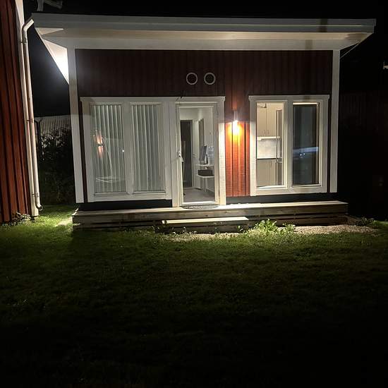 Superfint litet hus på ca: 35-40m2 fördelat på 2 rum, kök och badrum/toalett. Stora glaspartier med jalusier, dimbara spotlights, ny luftvärmepump med AC funktion, Tvättstuga, uteplats mm. Parkering, trädgårdsskötsel, vatten, sophämtning osv ingår i hyran. El tillkommer. Perfekt boende för studerande. Ca: 2 km till universitetet och nära till buss och affärer. Uthyres till skötsam person med ordnad ekonomi. Möblerad eller omöblerad enl ök. Serviceavgift för hyresgäst: 321