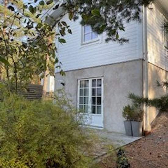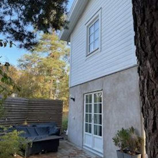 Vi hyr ut vårt fina Attefallshus som är i två plan. Kök och allrum på övervåningen, sovrum och badrum på nedre våning med tillång till trädgård. Där finns även uteplats med möbler. Huset ligger naturskönt i Saltsjö Boo, nära elljusspår, badsjö (Glasbrukssjön) och ca 10 min promenad till buss. Huset är delvis möblerat med en dubbelsäng, körbord och stolar finns också, liksom mattor (om gästen vill ha dem). El och wifi ingår i hyran. Vår hyresgäst flyttar ut den 1/2 så huset är ledigt från den 2/2. Serviceavgift för hyresgäst: 624