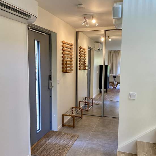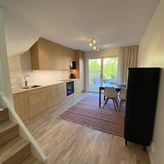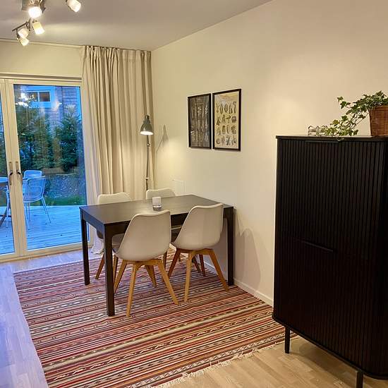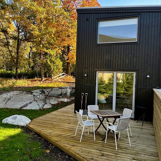 Välkommen till Vråkvägen i Saltsjö-boo. Nybyggt litet sutteränghus med egen uteplats och trädgård. Huset står avgränsat och insynsskyddat på större villatomt med egen infart och parkeringsplats. Nära till natur, sjö och havsbad. Gångavstånd till butik (Hemköp) och buss (30 min till Slussen). 56 kvm fördelat på 2 rum och kök. Möblerad. Luftvärmepump AC/uppvärmning. Planlösning: Botten plan; hall, badrum och kök. Övre plan; vardagsrum inkl. bäddsoffa och sovrum. Trappa mellan våningarna. Hyran inkluderar vatten, el, wifi (fiber), sop- och ...