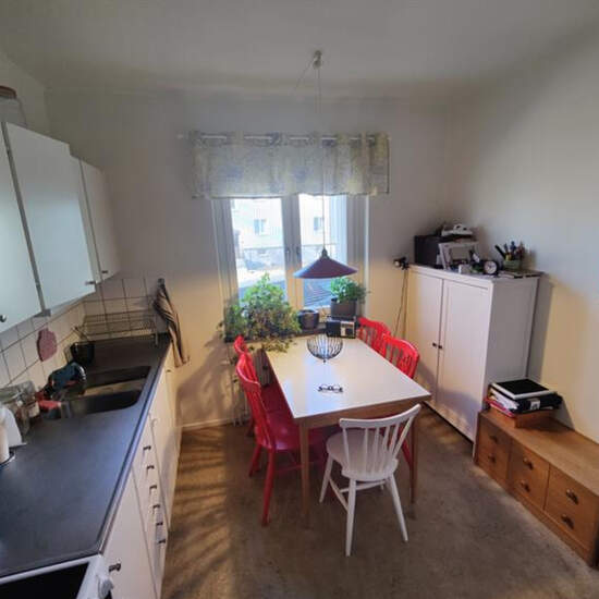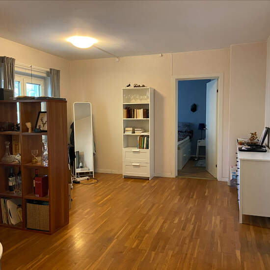 Två rum och kök en halvtrappa upp. Ligger på en mysig innergård. Tvättstuga + bastu i huset mittemot.