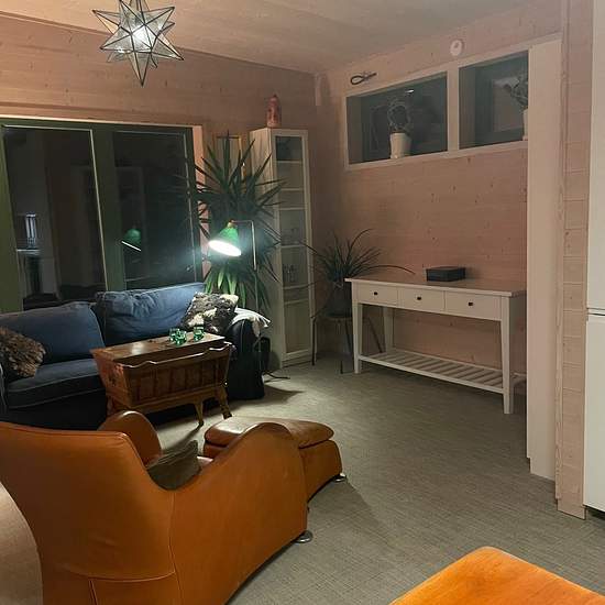 Charmigt gästhus på pittoreska ön Tranholmen, 20 minuter från Stureplan. Nybyggt hus i ett plan bestående av kök/matplats/allrum och generöst sovrum. Passar för ett par, även med ett spädbarn. Med SL-biljett tar man sig in till centrala Stockholm med färja och tunnelbana/buss på ca 20 minuter, punktligt via Ropsten. Färjan går från brygga 3 minuter från huset gående. På Stocksundssidan finns parkering för bil och under vinterhalvåret finns en gångbro dit. Gästhuset ligger längst väster ut på vår stora tomt med gräsmattor och poolområde som a...