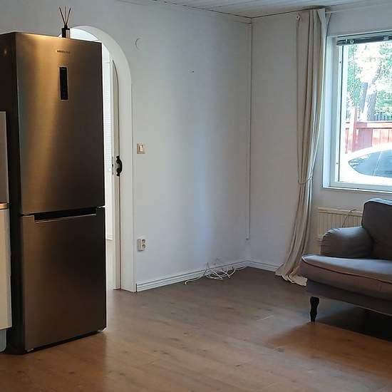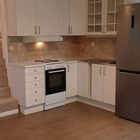 En del av en villa med egen ingång och väl isolerad. Består av 2 våningar: kök o vardagsrum, ett stort rum, en mindre rum, dusch och toalett i varje våning samt stor altan. Några minuter från Täby centrum. Bra kommunikation både buss och Roslagsbana. Förskola 20 meter och skolor några minuter att gå. Parkering, vatten och sophantering ingår i hyran. Passa perfekt till små familj. Serviceavgift för hyresgäst: 773