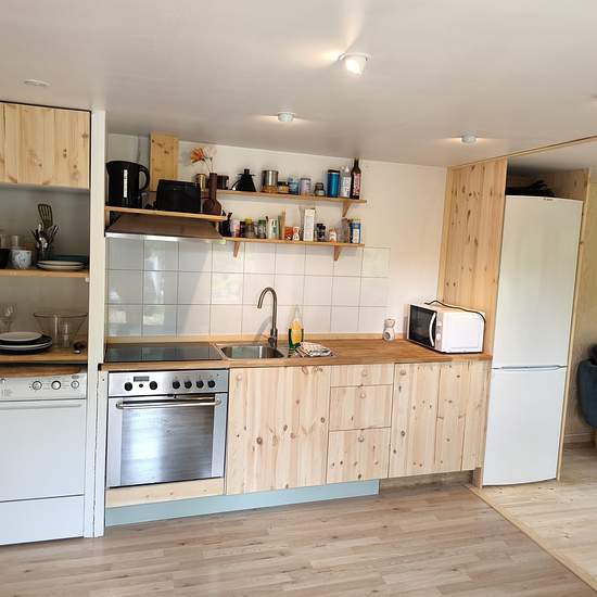 Fin stuga som passar bra för en person eller par. Trädgård med fruktträd. 8 min till buss, 1 minut till havet nedanför, sjöglimt från huset. Egen uppfart och parkering för bil eller cykel Sophämtning, internet (fiber) ingår. El extra. Lugnt område i skärgården med 30 minuter till centrala Stockholm med bil. Med buss 45 minuter till Gullmarsplan. Huset del av tomt men ligger separat så känns som egen tomt. Serviceavgift för hyresgäst: 490