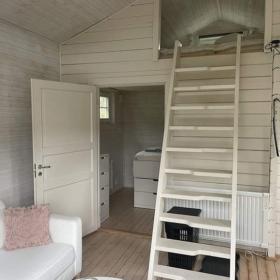 Attefallshus med 2 rum, sovrum 1 bädd + storstuga med pentry, toa med dusch. Loft tillkommer med 2 bäddar. (Boendet är optimalt för 1 person) Lugnt läge där huset ligger i skyddat läge med egen del av trädgården. Uteplats med grill i söderläge. 800 m till buss mot Kungsbacka. Tillgång till tvättstuga enl ök. El och mobilt bredband ingår. Serviceavgift för hyresgäst: 321