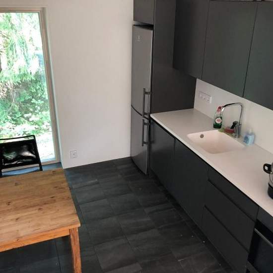 Havsnära, modern liten villa, uthyres tillsvidare. 78 kvm. 2 våningar Vardagsrum, kök, badrum på entréplan, samt terrass. 1 stort sovrum på övervåningplan, med utgång till terrass. Hyrs ut omöblerad. Privat brygga med badplats ca 100 meter bort Naturtomt 14 000 kr / månad. Kallhyra. Serviceavgift för hyresgäst: 833