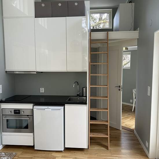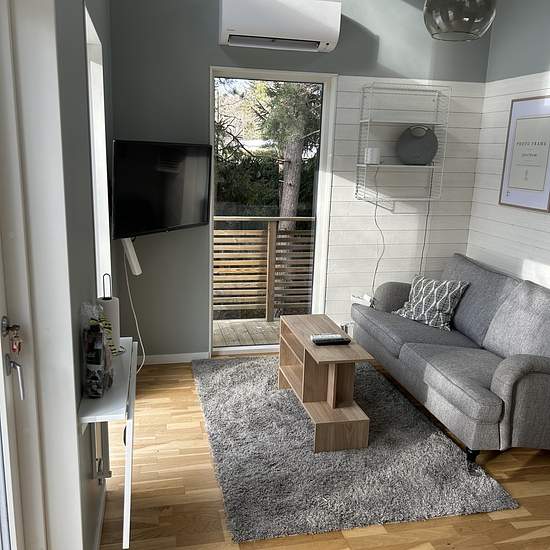 Hej, Vi hyr nu ut vårt fina atterfallshus. Huset ligger privat med närhet till skog och natur. Atterfallaren är 25 kvm plus ett sovloft. På loftet finns en 160cm säng samt förvaring. På entréplan möts du av ett rum med kök/vardagsrum. I köket finns ugn/micro, kylskåp med litet frysfack, köksfläkt, diskho samt mindre arbetsyta. Porslin samt köksartiklar finns. I vardagsrummet finns ett väggfäst köksbord med 2 köksstolar, soffa, soffbord, matta och en vägghängd TV. Huset värms upp med en luftvärmepump som är en bra och energieffektiv upp...