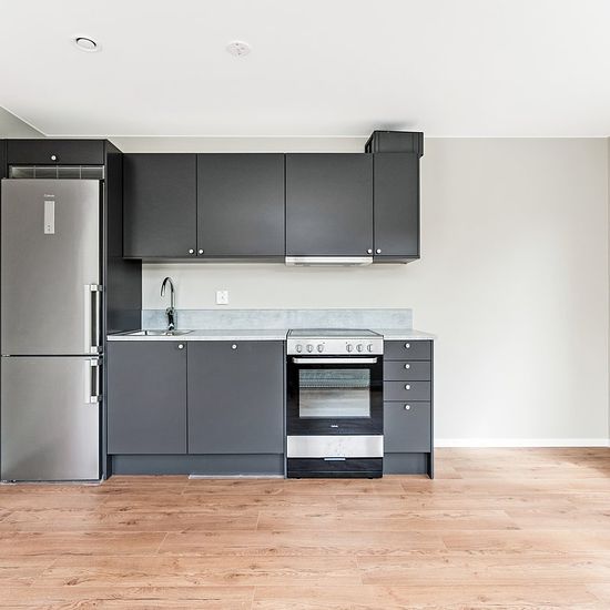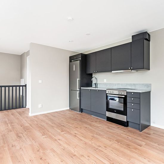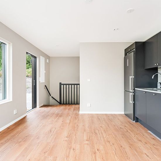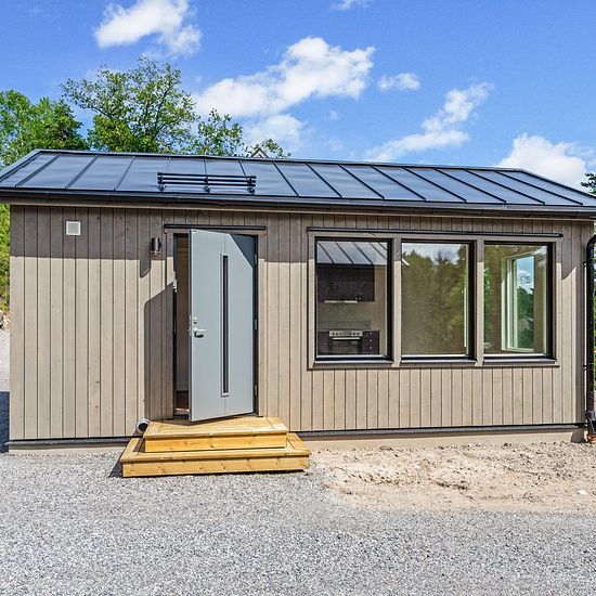 Svinninge, Åkersberga – Björnkärrsvägen 1E Välkommen till ett lugnt och grönt område i charmiga Svinninge! Här erbjuds ett nybyggt, välplanerat och energieffektivt studiohus i två plan om totalt 48 m², med avdelningsbart sovrum i källarplan. Inflyttningsklart Tomt om ca 140 m² med gräsmatta och p-plats Vattenburen golvvärme på båda planen Nära busshållplats, skog, bad och båtplats Entréplan: Ljus hall, helkaklat badrum med dusch och uppvärmt klinkergolv. Öppen planlösning mellan kök och vardagsrum med fina söderfönster. Köket från Marboda...