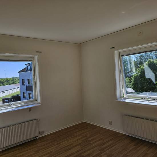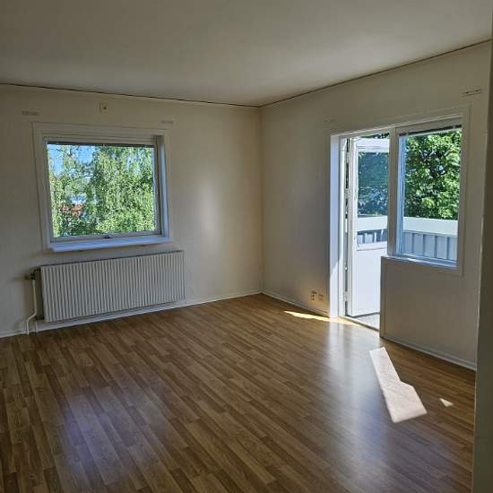 Fin och ljus lägenhet på plan två av tre. Nymålat och nya fönster. Lungt hus med portkod. Gångavstånd till tåg, buss. Mataffär, gym mm. Värme och vatten ingår. Balkong och parkeringsplats. Uthyres till person med fast inkomst och inga betalningsanmärkningar. Tecknas avtal på minst ett år så är första månadens hyra kostnadsfri. Serviceavgift för hyresgäst: 291