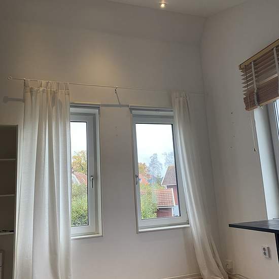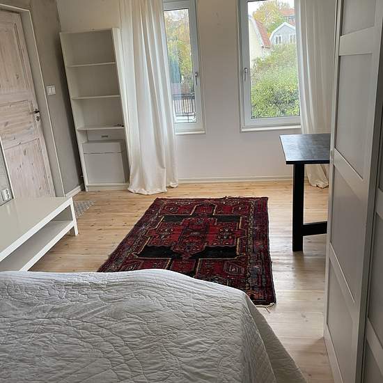 2 rum i tvårumslägenhet . Båda rummen har sängar. Passar utmärkt för två boende kompisar arbetskamrater eller par . Bostaden är belägen i övervåning i villa. Rum 1 ca 20 m2 , ljust rum högt i tak. Trägolv med golvvärme , putsad väggyta. Dubbelsäng 160 cm . Rum 2 : 15 m2 , säng 105 cm liten soffa. Bostaden har tidigare hyrts ut som separata rum med delad kök och toalett. Kök med takfönster, köksutrustning fn ingen ugn ( kan ev ordnas) . Hygienutrymme kaklad med värmegolv dusch/ toa/handfat. Uteplatser för kaffe i lummig trädgård . Sol...