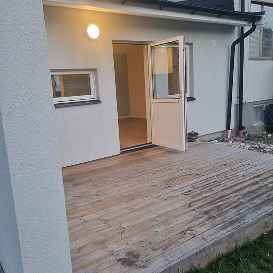Lägenheten är på 56 kvadratmeter och den byggdes för cirka 2 år sen. Den har ute plats och ligger på bottenplan. Den är ledig att flytta in direkt. Serviceavgift för hyresgäst: 336