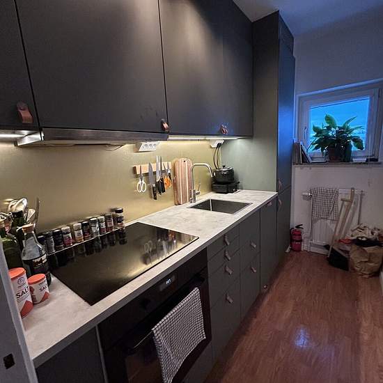Detta är en mycket välplanerad och trivsam 2-rumslägenhet i ett lugnt och omtyckt område. Lägenheten har ett fint naturligt ljusinsläpp och gott om förvaringsmöjligheter. Det moderna köket är fullt utrustat med induktionshäll, diskmaskin och bra arbetsytor. Lägenheten hyrs ut möblerad (TV ingår ej). Från vardagsrummet nås balkongen med fin utsikt, möblerad med balkongmöbler vilket är perfekt för morgonkaffet eller sommarkvällar. Hallen är rymlig och erbjuder ytterligare förvaring. Mycket bra kommunikationsläge: endast ca 50 meter till tun...