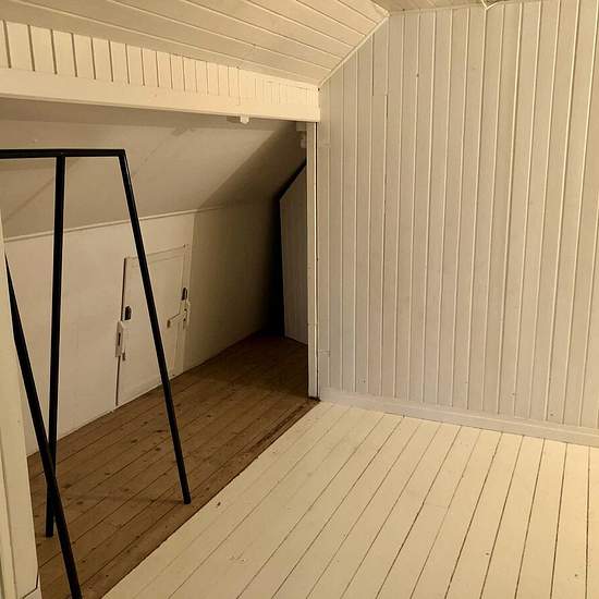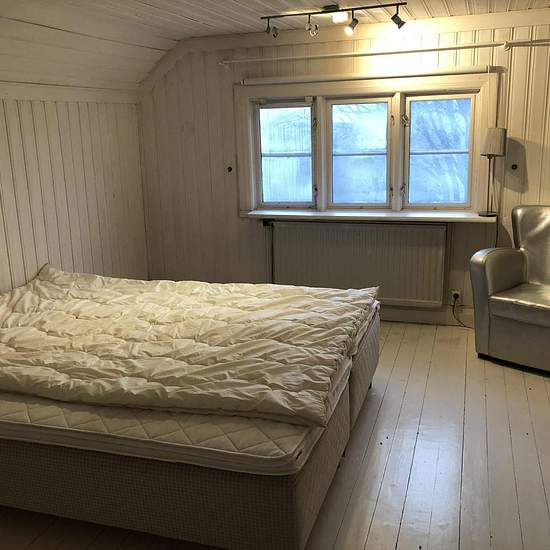 Planlösning Charmig vindsvåning om ca 40 m² belägen högst upp i huset. Sovdelen består av en sovalkov med dubbelsäng, placerad i en passage mellan kök/hall och vardagsrum. Vardagsrummet har bäddsoffa, vilket ger totalt upp till fyra sovplatser. Planlösningen är yteffektiv och passar bra för ensamstående, par eller mindre hushåll som söker ett lugnt och trivsamt boende. Vindsläget ger en ombonad känsla och ett privat, avskilt boende. Kommunikation Mycket goda kommunikationer. Tåg och buss finns bara någon minuts promenad bort med smidiga för...
