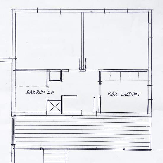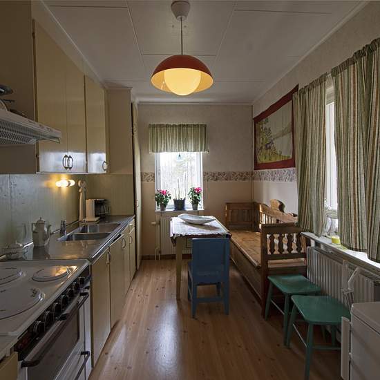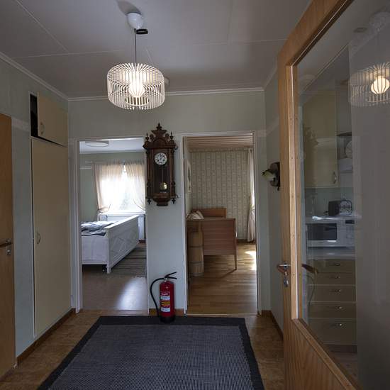 Lägenhet nära huvudbyggnaden. Två sovrum, kök, hall, badrum. Möblerad, tvättmaskin, torktumlare, komplett med disk m.m. Natursammanhang, sjö i fastigheten, möjlighet att använda fiskebåt, bastu, möjlighet till promenader och användning av cyklar. Mycket lugn plats, busshållplats 1,8 km. Serviceavgift för hyresgäst: 594