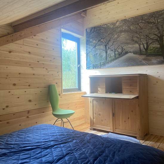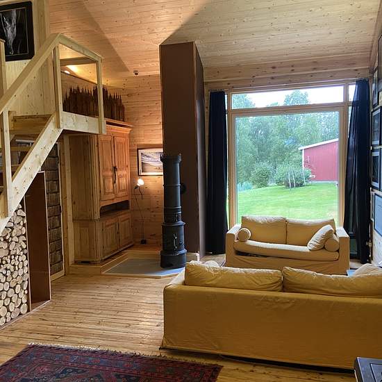Dubbelhöjd helt träloft. Fristående ingång, vardagsrum med pelletskamin, vedspis, värmepump. Kök, badrum, garderob. På övervåningen finns två sovrum. Läge nedsänkt i naturen, möjlighet till sjö, promenader, parkeringsplats. Oberoende uppvärmning ingår inte i priset. Busshållplats vid 1800m. Serviceavgift för hyresgäst: 891