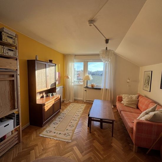 Välkommen till Ekängsgatan 11, en rymlig 2:a med charmigt snedtak, vacker utsikt och mycket ljusinsläpp, belägen på södra gaveln. Huset är byggt på 50-talet vilket det finns spår av i det vackra parkettgolvet och ett rymligt kök med mycket skåp och plats för köksbord. Den här mysiga lägenheten är belägen i ett naturskönt område 11 minuter med buss från centrum och ligger i ett blandat område med lägenheter och villor, med gångavstånd till den vackra Öresjön med bad- och grillplats, naturreservatet Rya åsar och Kypegården. Närmaste mataffär...