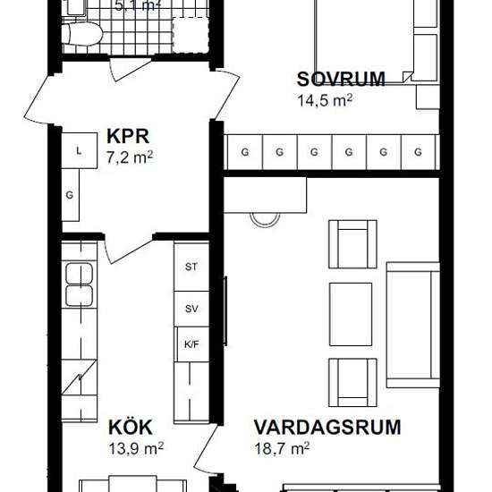 2 rum lägenhet i Boxholm