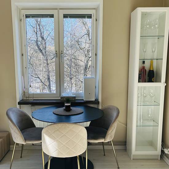 Renting out my stylish and fully furnished 40sqm apartment for 15,500 SEK/month, all-inclusive starting from 15th November, until 15th feb with the possibility to increase the contract. This apartment spans 40m2 and features a small and cozy bedroom with a 120cm bed and a wardrobe. In the living room, you'll find a versatile sofa bed that easily transforms into a spacious 160cm bed. Additionally, the living room has a small workstation and a TV for your entertainment along with a dining set for two. The kitchen is separated from the living...