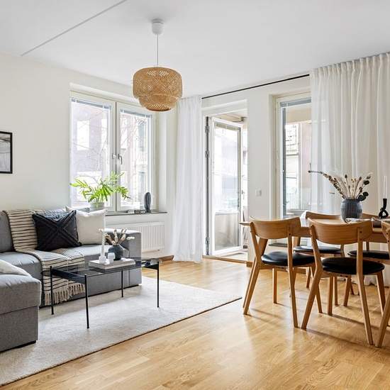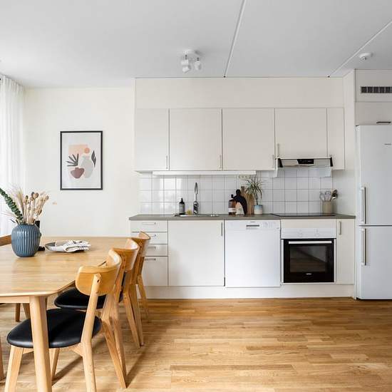 Ljus och smart planerad lägenhet med balkong. Välkommen till en välplanerad bostad där kök och vardagsrum möts i en öppen och social yta. Lägenheten erbjuder ett separat sovrum med garderob, goda förvaringsmöjligheter i hallen samt ett helkaklat badrum utrustat med kombinerad tvättmaskin och torktumlare för extra bekvämlighet. Från vardagsrummet nås balkongen som vetter mot ett lugnt och trivsamt läge, perfekt för avkoppling. Bostaden hyrs ut fullt möblerad och är utrustad med säng, soffa, köksbord och stolar, bestick samt övrigt nödvändig...