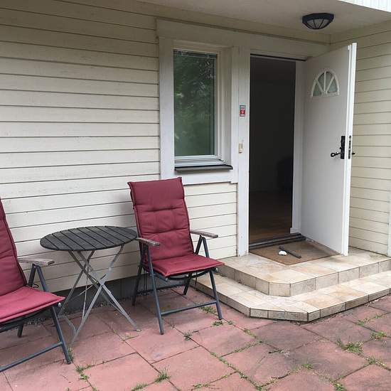 2 rum i villa, egen ingång och uteplats. Tillgång till kokplatta, micro, kyl och frys samt dusch/WC i gemensamhetsutrymmen men nyttjas endast av hyresgäst. El, sophämtning, wifi och parkering ingår. Uthyres till 1 person. Bra kommunikationer, 8min till Mörby Centrum och 12min in till City med t-bana. Nära både universitetet och KTH. Närhet till badplats och löpspår. Stor vikt läggs vid person så skriv några rader och berätta om dig själv, Serviceavgift för hyresgäst: 398