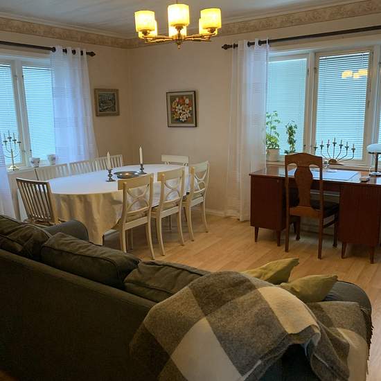 Renoverad lägenhet i 2 familjshus. Bottenplan. Uthyres till företag eller skötsam person med fast inkomst och inga betalningsanmärkningar. Stort öppet kök och 2 stora rum. Ljudisolerade fönster. Kan hyras möblerad. Kan hyras veckovis, månadsvis eller tillsvidare. Nära Borlänge ( 15 minuter) Busshållplatser ligger nära huset. 10 minuter till Djurås där all service finns som tex vårdcentral, affärer, förskola skola. Ett resecentrum med busshållplats och järnväg finns i Djurås, Vatten och sophämtning ingår i hyran. Uppvärmning sker med nyinst...