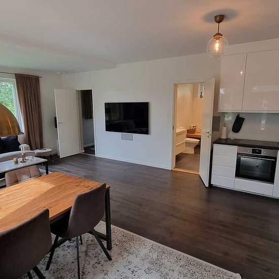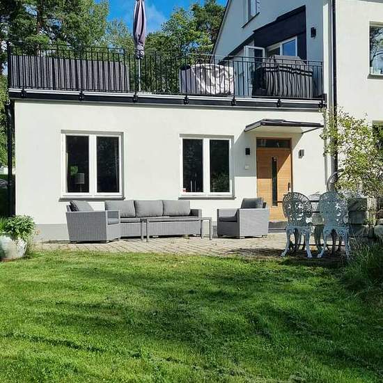 Separat påkostad uthyrningsdel i villa med egen ingång uthyres tillsvidare. 2 rok på totalt 57 kvm fördelat på ett öppet vardagsrum/kök, ett sovrum samt ett stort badrum med bastu och tvättmaskin/torktumlare. Lägenheten har genomgående mycket hög standard med en takhöjd på 2,65 meter, stora fönster med mycket ljusinsläpp, inbyggda högtalare både i vardagsrum och badrum, 65 tums TV, fullt utrustat kök inklusive diskmaskin och micro. Utanför dörren finns en stor tillhörande stenlagd uteplats med både loungemöbler och matbord, gratis parkering ...