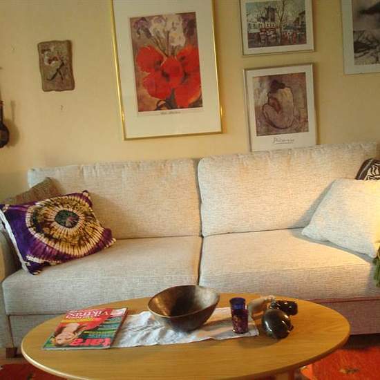 Mycket fin tvåa, lugnt område och nära tunnelbanestation. Trevlig nyrenoverad tvåa i eftertraktat område, bostadsrätt. Nära tunnelbana och så tar det 12 minuter till Slussen. I sovrummet finns en 140 cm bred säng. I vardagsrummet finns bäddsoffa med två bäddar. I övrigt, 28 tums TV, stereo och micro. Stor balkong i söderläge, med utsikt över grönskande trädgård och stor äng. Mycket välskött bostadsrättsförening. Det är inte tillåtet att röka i lägenheten. Lugnt område med blandade åldrar på hyresgästerna, alltså allt från barn...