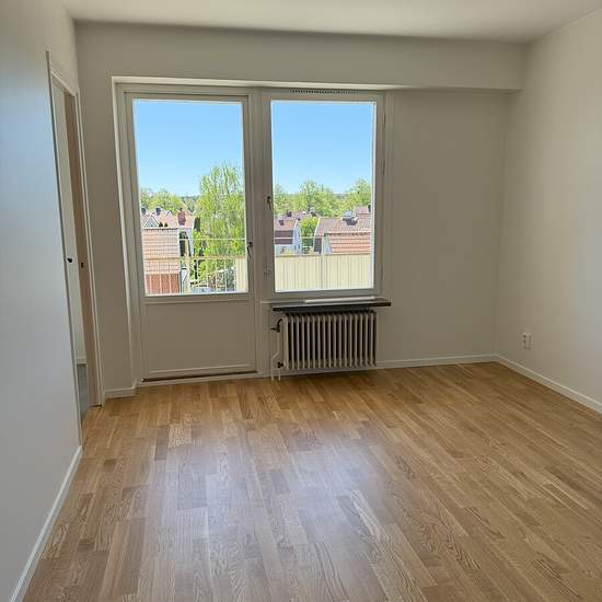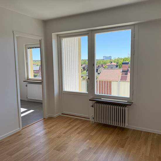 Ljus och trevlig lägenhet med två balkonger. Lägenheten har precis genomgått en renovering. Väggarna är ljusmålade och det är ny parkett i vardagsrum och sovrum. Kök och hall har ny matta. Vardagsrummet är stort och har fri utsikt över villorna i området. Från vardagsrummet når du lägenhetens ena balkong. Kök med nymålade luckor och nya vitvaror. Rymligt sovrum med ytterligare en balkong. Lägenheten har gott om förvaring. Både garderober samt en stor klädkammare finns. Badrum med våtrumsmatta och kakel. Lägenheten har säkerhetsdörr. Trappupp...