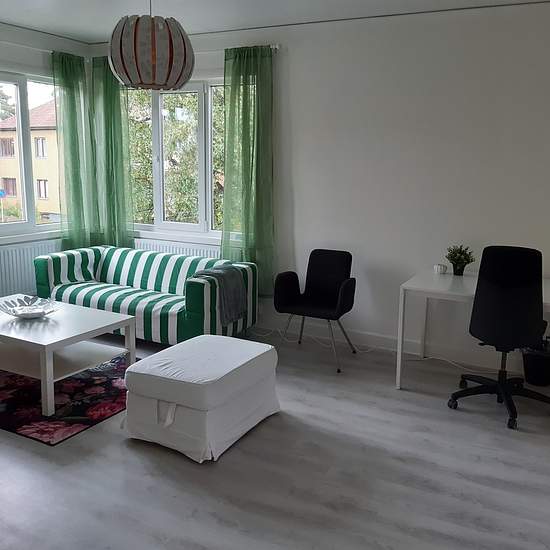 MÖBLERAD bostad tillgänglig för uthyrning, nyrenoverad och fräsch 2:a på 55 kvm. Uthyres till konsulter, veckopendlare eller studenter på kortare eller längre period. Lägenheten är på 2 rum (vardagsrum och sovrum), kök, hall etc för uthyrning i ett lugnt villaområde i centrala Eskilstuna (Övre Nyfors). - Uppvärmning, internet och sophantering ingår. - Tillgång till parkeringsplats finns. - Nymålad lägenhet. - Badrum är totalrenoverad, helkaklad med klinkers och allt är nytt som tvätt- & torkmaskin, toa, dusch, tvätt handfat etc. - Kylskåp...